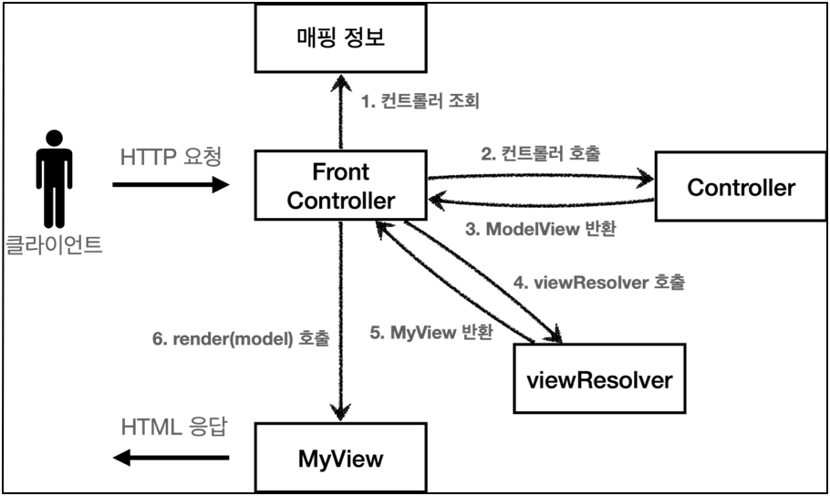 - viewResolver 호출: 뷰 리졸버를 찾고 실행한다.